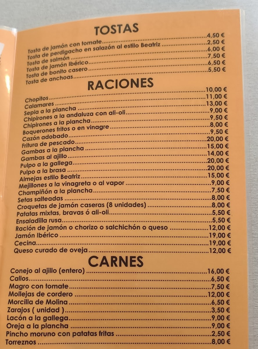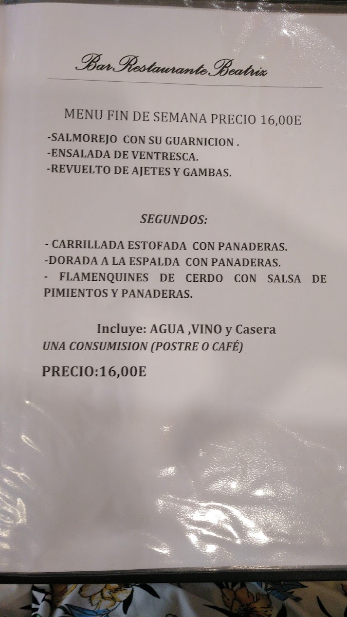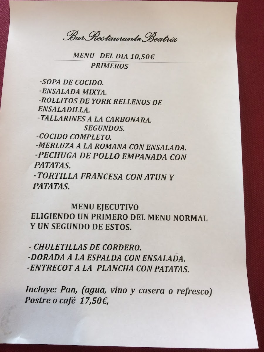 Restaurante Bar Beatriz Menu