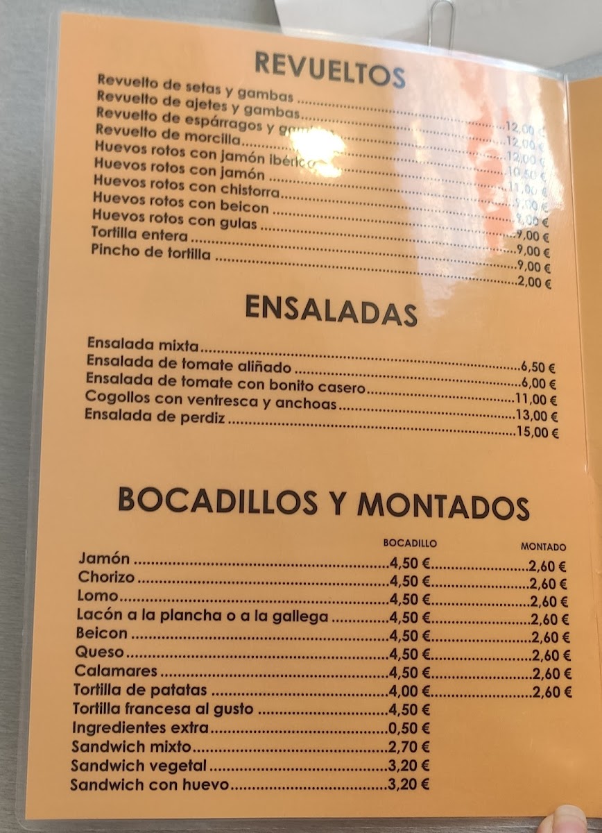 The menu features a mix of traditional Spanish bites and grill favorites, including options like Huevos Rotos con Gulas, Pulpo a la Gallega, and Entrecot, alongside popular tapas such as Bravas y Torreznos and Almejas. Lighter fare like Ensaladilla Rusa and flavorful sandwiches like Bocadillo de Chorizo provide flexible choices for any time of day. On the drink side, you’ll find local beers like Mahou and traditional options to complement the food and atmosphere.